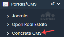 4. On the left side, locate the Portal/CMS category. Click on it and then on the Concrete CMS link that appears.